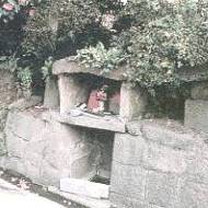 ![]() | 空海は、774 年に讃岐国(現在の香川県)に生まれました。2年間中国で真言密教(しんごんみっきょう)を学んだ後帰国し、紀伊国(現在の和歌山県)の高野山金剛峯寺を創建し、後に弘法大師と言われました。 空海は水なき所に池を掘り、橋なき所に橋を架け、道なき所に道をつけ、食の貧しい者には食を得る方法を教え、病む者のためには良医となり、人々の苦しみを解決しようとしました。 こうしたことから、弘法大師にまつわるお話は全国各地にあり、「弘法井戸」と呼ばれる井戸もいたる所に存在します。寝屋川市内にも打上・田井・国松・郡(湯屋が谷=やがたん)の4カ所に弘法井戸があります。 打上の弘法井戸は東高野街道沿いにあり、現在でも清水がわずかながら湧き出ています。この井戸はいくら日照りが続いても枯れることはなかったと言われており、東高野街道を通って弘法大師ゆかりの高野山へお参りする人々ののどを潤していたことでしょう。 |