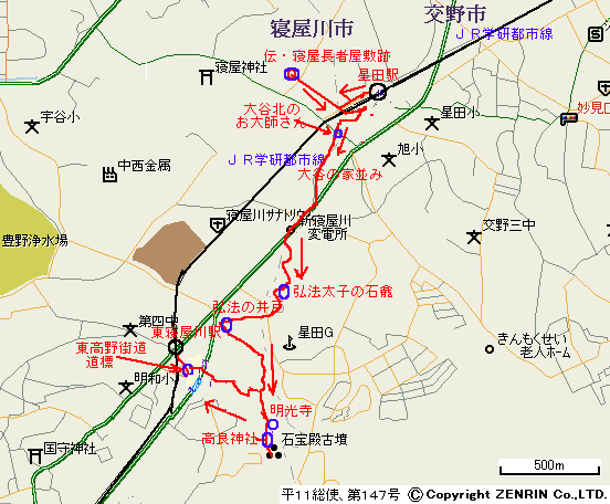 コース:JR星田駅→伝・寝屋長者邸跡→大谷橋(大谷北お大師さん)→
