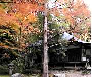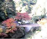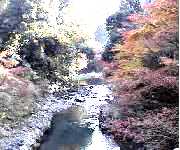 西明寺境内の紅葉 潅頂橋を眺める 高雄橋から清滝川を