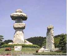 土山・平成万人灯 自然石の石灯篭では日本一の大きさを誇り、旧宿場町のシンボルになっている |
