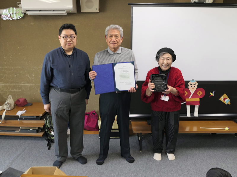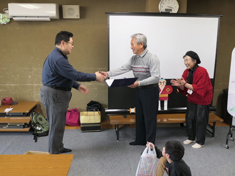 | 下村勝巳様より、「長年にわたり交野の文化歴史の研究や継承に市民の立場から貢献し、 多くの交野市民に地域史の重要性について今もなお説き続けていること」を評価いただきました。 |