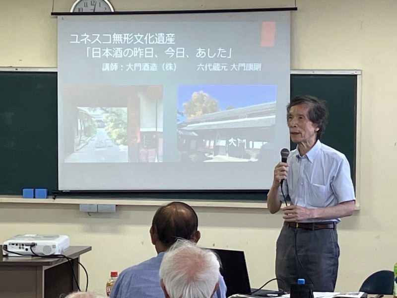 | <第147回> 令和7年7月定例勉強会 『日本酒の昨日、今日、あした』 =酒造りの世界へお誘い= 講師:大門 康剛氏(大門酒造 六代蔵元) 青年の家・201号室 午前10時~12時 42名(会員36名)の参加 |