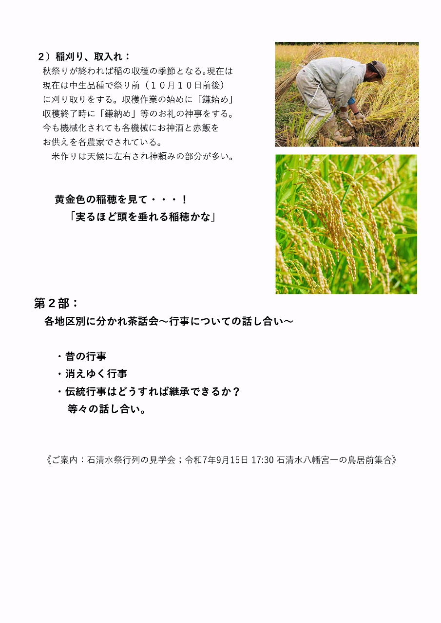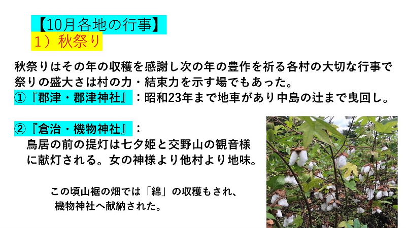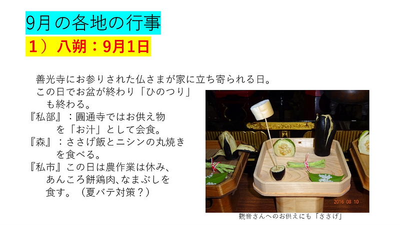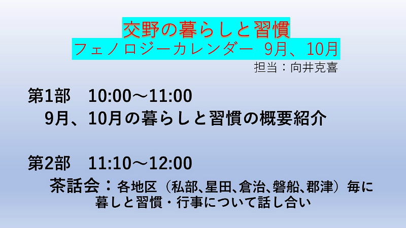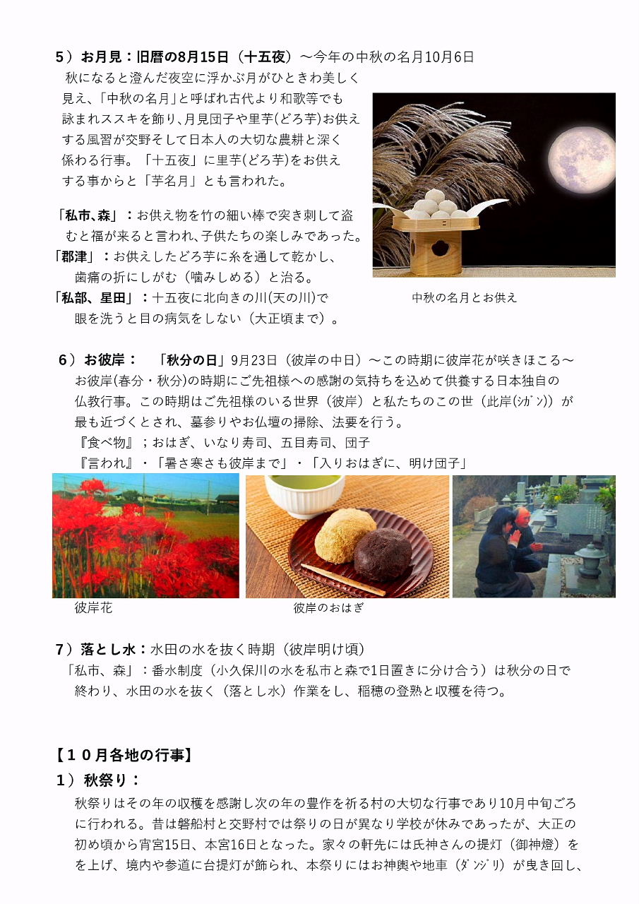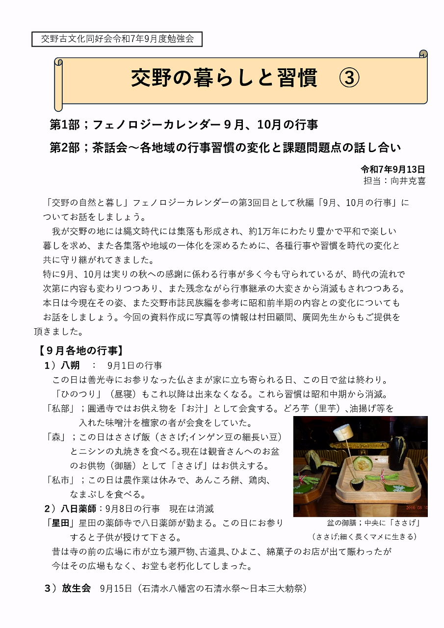 『交野の暮らしと習慣 ③』レジメ 第1部 フェノロジーカレンダー9月・10月の行事 |