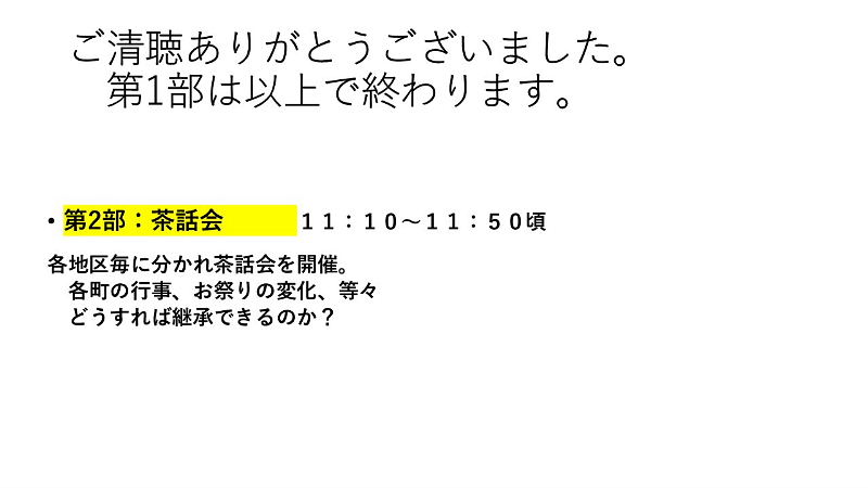 | 第2部 茶話会;各地の行事習慣の変化と課題点 | |