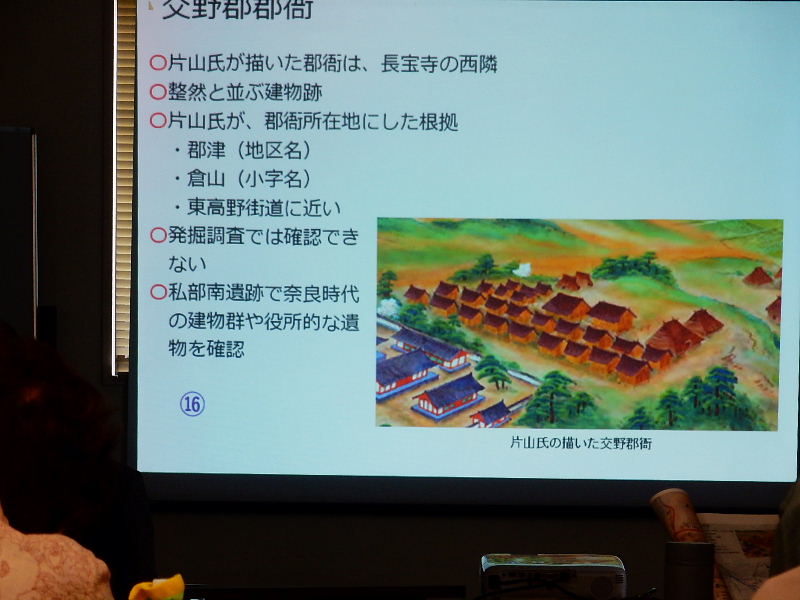 | 巽会長より「星田神社の佐々木宮司さんのご講演(星田神社と妙見宮のこと)と茄子作遺跡現地説明会などの紹介」の挨拶に続き、盛岡事業部長より、本日の講師、橋本高明先生の経歴の紹介があり、講演「古代のかたの」が始まりました。 ①長宝寺跡 白鳳期の軒瓦が出土することから、古代寺院の存在は認められるが、 寺院に関係する遺構は検出されていない。さらに詳細な発掘調査が必要。 ②東高野街道 東高野街道から分岐して南下する私部街道が、長宝寺跡の西側に接して 存在することは、両街道とも長宝寺付近では7世紀まで遡ることも考えられる。 〇 交野郡衙跡 片山氏が描いた郡津地区での「交野郡衙」は発掘調査成果からみても確認 できない。私部南遺跡が、検出された整然と並ぶ建物群や束帯や硯などの 公的施設(役所)関連の出土品から奈良時代の交野郡衙の可能性が高い。 〇 天野川条里 古代における条里制は認められない。 現在の天野川と貝原益軒が見た天野川の違い。 近世から近代における天野川の築堤との氾濫原の開発。 ※今回の講演のテーマが手違いにより急遽「古代のかたの」に変更になりましたこと、ご了承ください。 <講演概要> 「古代のかたの」 1.はじめに 2.片山長三とは 3.片山長三作「白鳳盛春之交野条里田」 4.片山長三氏が描いた「古代のかたの」の検証 〇長宝寺跡 〇東高野街道 〇交野郡衙跡 〇天野川条理 5.「古代の交野」の現状と課題 ※ 当日の講演に配布されたレジメ「古代の交野」を掲載しております。 ※ 講師:橋本 高明先生のプロフィル 昭和56年に大阪府教育委員会文化財保護課に入庁 (文化財専門職員 考古学技師として採用される) *入庁後10数年は、埋蔵文化財調査の担当として開発事業に伴う 埋蔵文化財の発掘調査に従事する。 *その後は、大阪府内における大阪府の各部局や国土交通省等の 実施する開発事業と発掘調査の調整業務に従事する。 *晩年は、大阪府教育庁文化財保護課調査事業グループのグループ長 として大阪府内で実施される各発掘調査の指導を行なった。 ◎大阪府を定年退職後、令和元年から交野市において文化財専門職員 として採用される。現在で7年目。 ※今回、講師の先生のご厚意により当日配布された「レジメ」 「古代のかたの」の資料を頂戴しましたこと、記して感謝申し上げます。 ※ 写真は、竹澤利直さんより、提供頂きました。 |