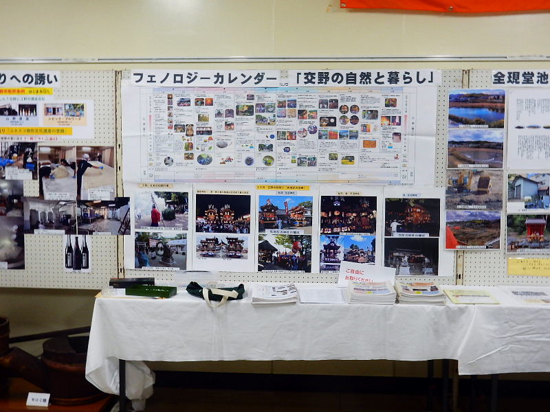 | 展示概要 1. 交野古文化同好会の展示テーマ 「交野の自然と暮らし=フェノロジーカレンダー」と 「お酒と文化」と「饒速日命と交野物部氏」 「交野古文化同好会の活動記録記録」 @交野の自然と暮らし・フェノロジーカレンダーの展示 A交野物部氏と饒速日命 資料・写真展示 B酒つくりへの誘い・森遺跡と森古墳群と車塚古墳群 C年中行事と交野の秋祭りの写真展示 D交野郷土史かるた・全現堂池の古今 資料展示 E交野の歴史DVDの上映 2.交野古文化同好会の記念誌の紹介と50周年記念誌 調査研究 3.機関紙「石鏃179・180号」のPR/配布 |