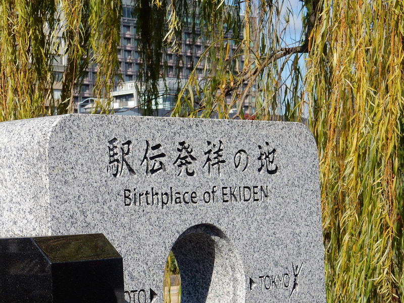スタート地点は京都三条大橋、ゴールは東京上野不忍池で、5 0 8km2 3区間を3日間かけて走るレースでした。この碑は、駅伝発祥から100年を迎えたことを記念して建立された。 |