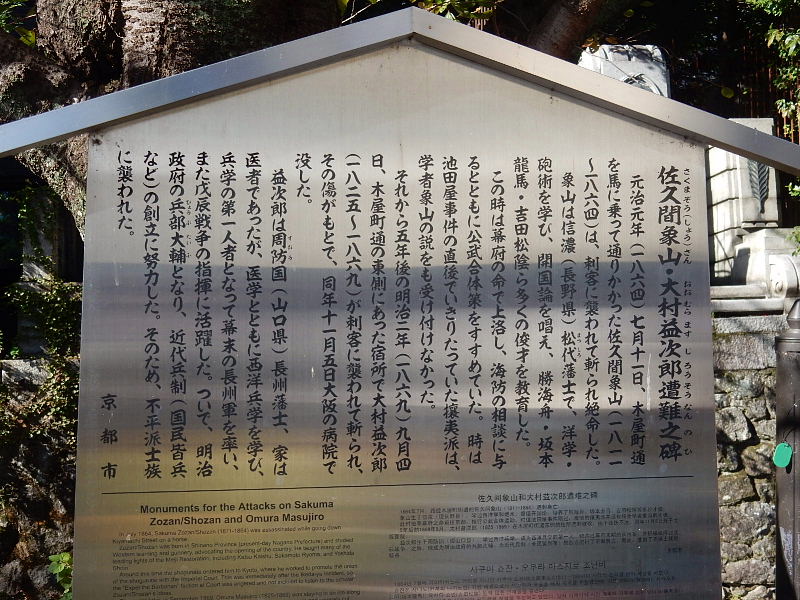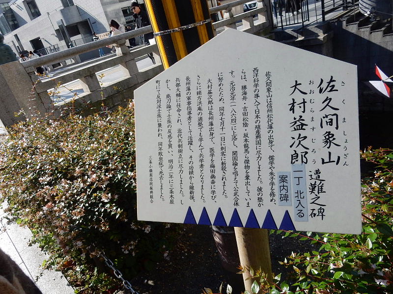 | 遭難の碑が建っていますが、実際に遭難(襲われた)した場所は、この地より北ヘー町の場所です。同時期に襲われたのではなく、佐久間が先で、大村が後です。 |