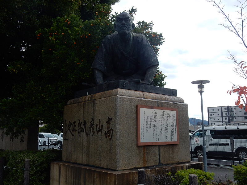 | 御所の方角を向き、御所におわす天皇に向かって望拝する姿の像ですが、武士が土下座をしているような姿から、通称「上下座」として知られており待ち合わせ場所としてよくつかわれているようです。彦九郎は、明和元年(1764)18歳の時、学舎を志し遺書を残して家出し、はるばる京都にやつて来たそうです。 |