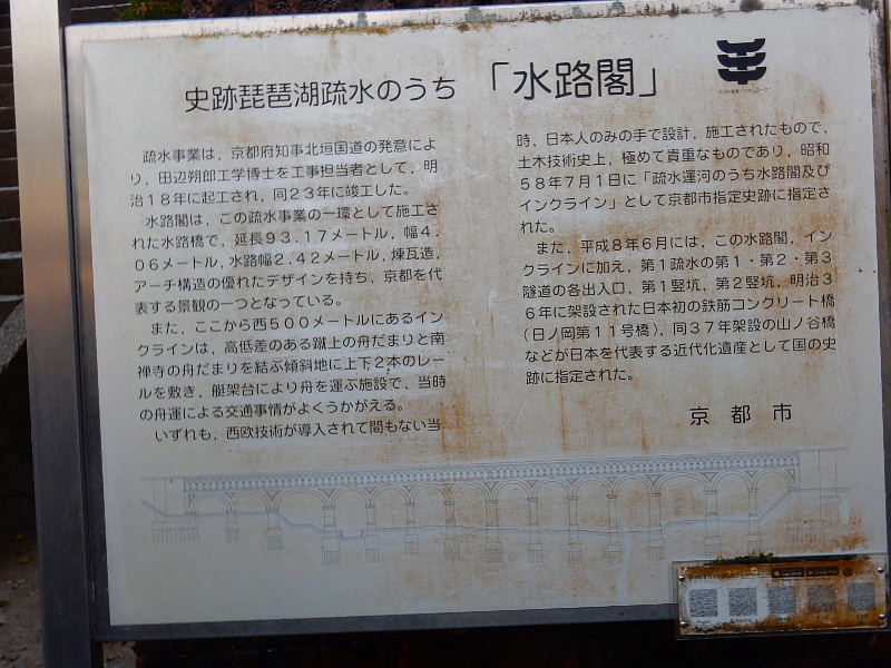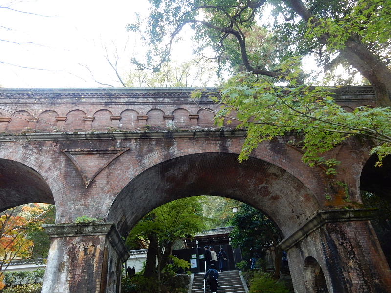 | 南禅寺境内にある琵琶湖疎水の水路橋です。境内の景観に配慮し、田辺朔郎が設計・デザインを行った。レンガ、花商岩のアーチ型の橋脚です。有名な観光スポットとして、多くの観光客が訪れています。又、映画・テレビなどの撮影もよく行われている。 |