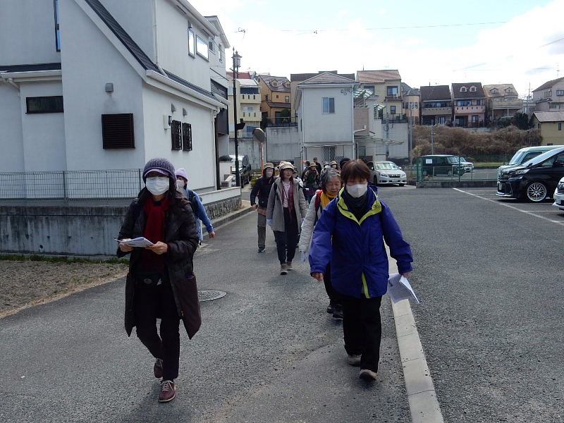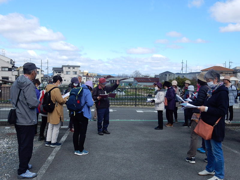 3月14日(土)、天候晴れ。京阪・私市駅前に集合、午前10時出発。