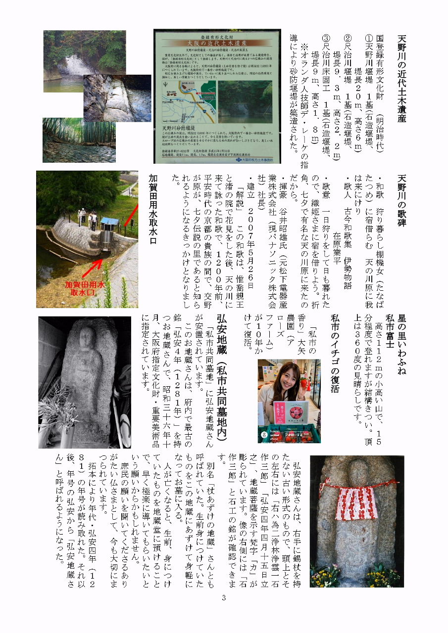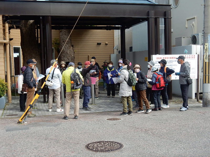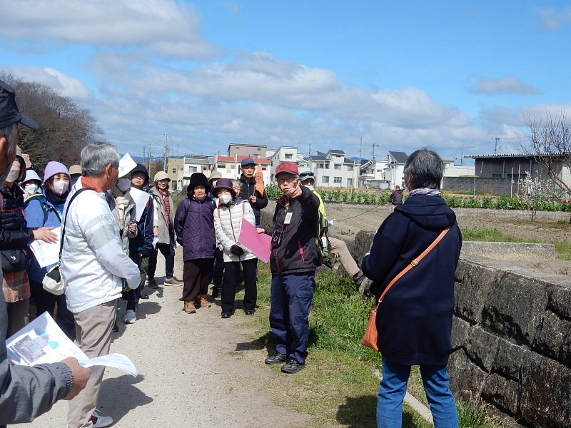 若宮神社から加賀田用水路や私市仁左衛門旧宅跡を通り、天野川沿いの散歩コースから私市水辺プラザ、星の里いわふね、弘安地蔵をめぐって、12時ごろ解散しました。