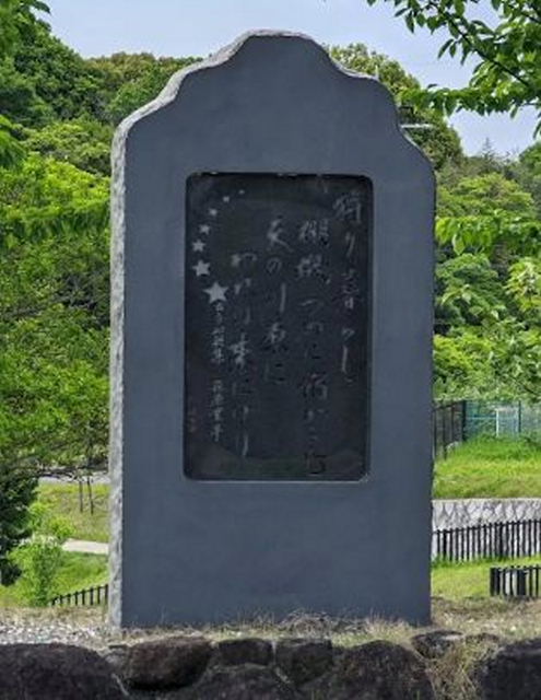 「解説」 この和歌は、惟喬親王と渚の院で花見をした後、天の川に来て詠った和歌で、1200年前、平安時代の京都の貴族の間で、交野が原が、七夕伝説の里であると知られるようになるきっかけとなりました