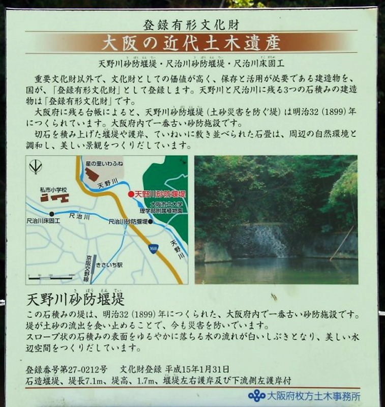 国登録有形文化財 (明治時代)@天野川堰堤 1基(石造堰堤、  堤長20m、高さ6m)