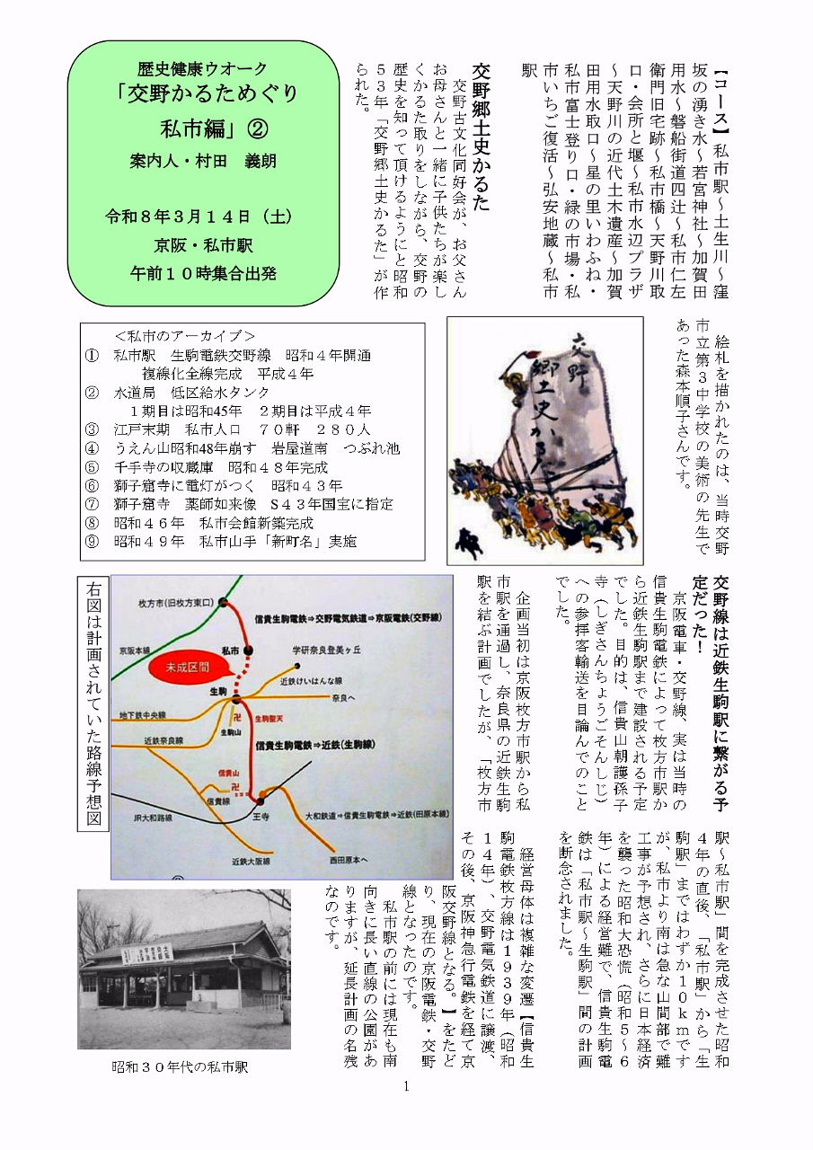 日時 : 2026年3月14日(土)午前10時 京阪・私市駅前集合
