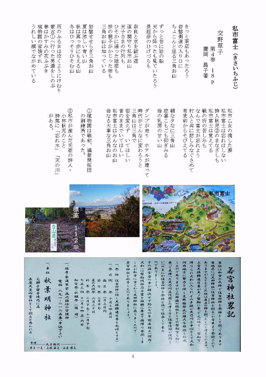 地元の人でも、あまり知られていない三角お山。廣岡昌子様 著「交野草子」4巻18pを紹介。