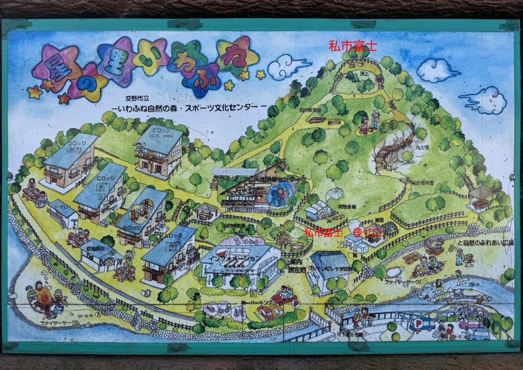 ![]() 私市富士への登り口は、「星の里いわふね」のプラネタリウムへの道の上り口にあります。 |